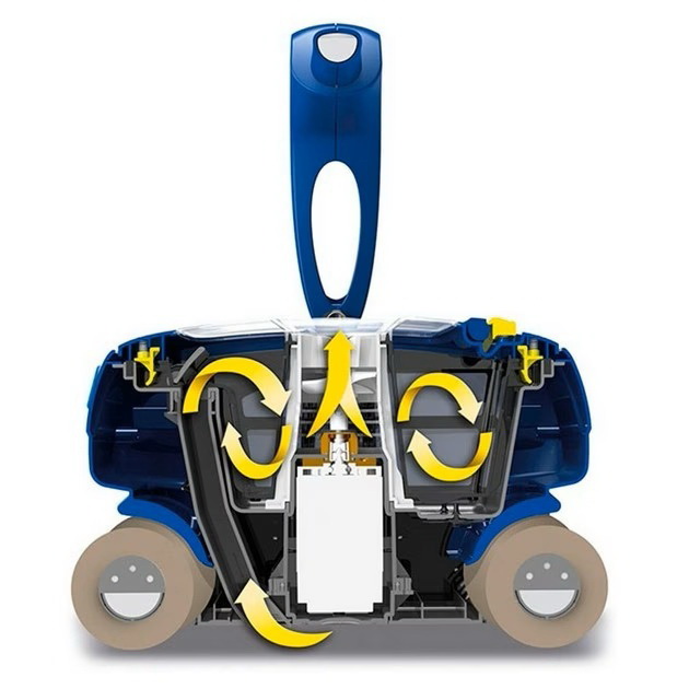 Automatic vacuum cleaner ZODIAC RC4402 CYCLONX, PVA brushes cleans the bottom, walls and water line of the pool. Cyclonic technology ensures constant suction power and at the same time prevents the robot from clogging. Cleaning the filter is very simple, it is easy to remove, just rinse it and let it dry. After the selected program is finished, it turns off by itself.